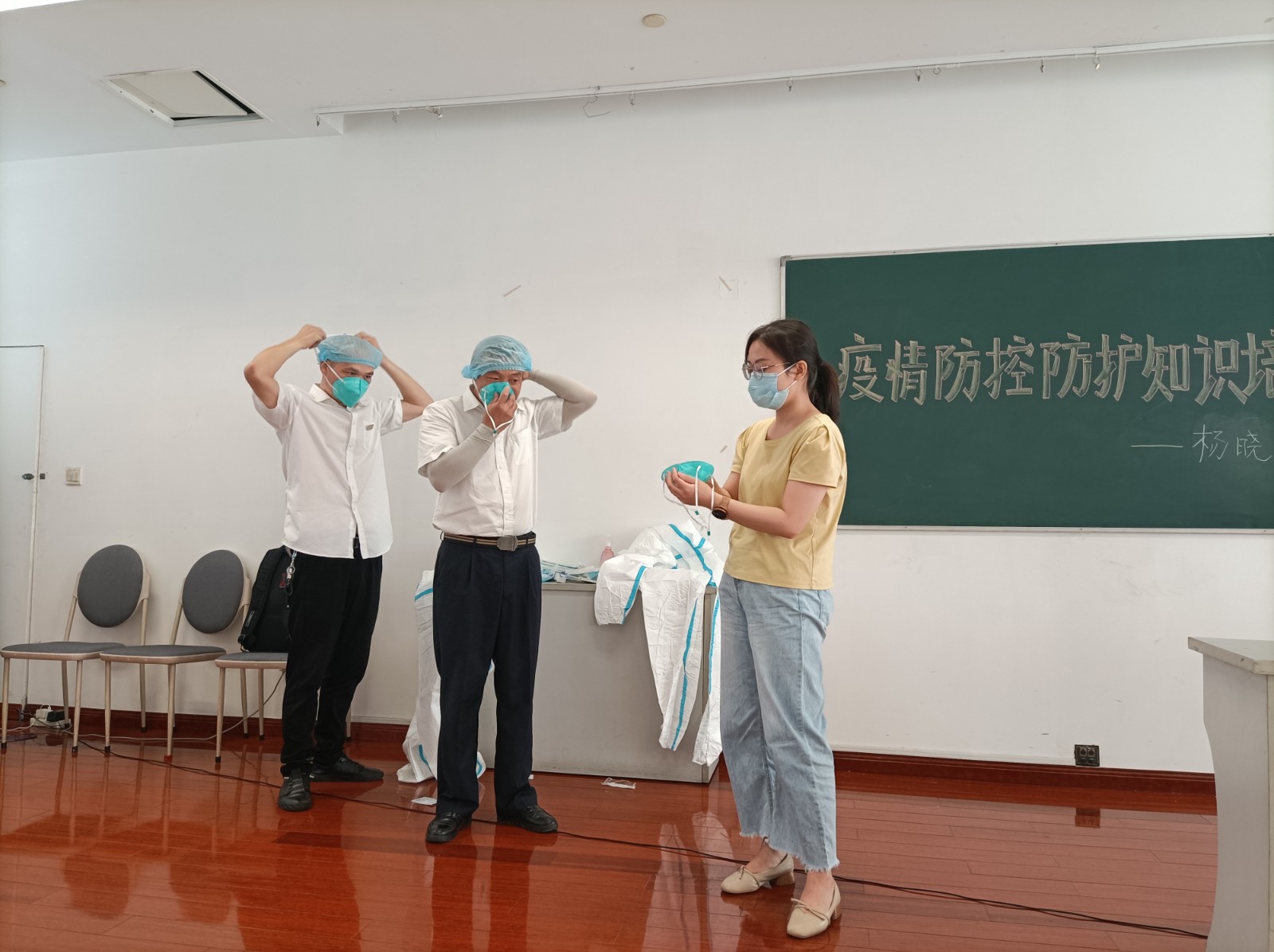 培訓中,楊曉對如何正確有效的自身洗消進行了專業(yè)示范,對防護服的穿、脫流程和注意事項進行了詳細分步解說。為確保駕駛員能迅速掌握防疫知識和技能并有效運用到平時的工作中去,楊科長邀請兩名駕駛員上臺現(xiàn)場演練防護服的穿、脫步驟,同時邊指導邊著重指出需要注意的地方,讓大家印象更加深刻。