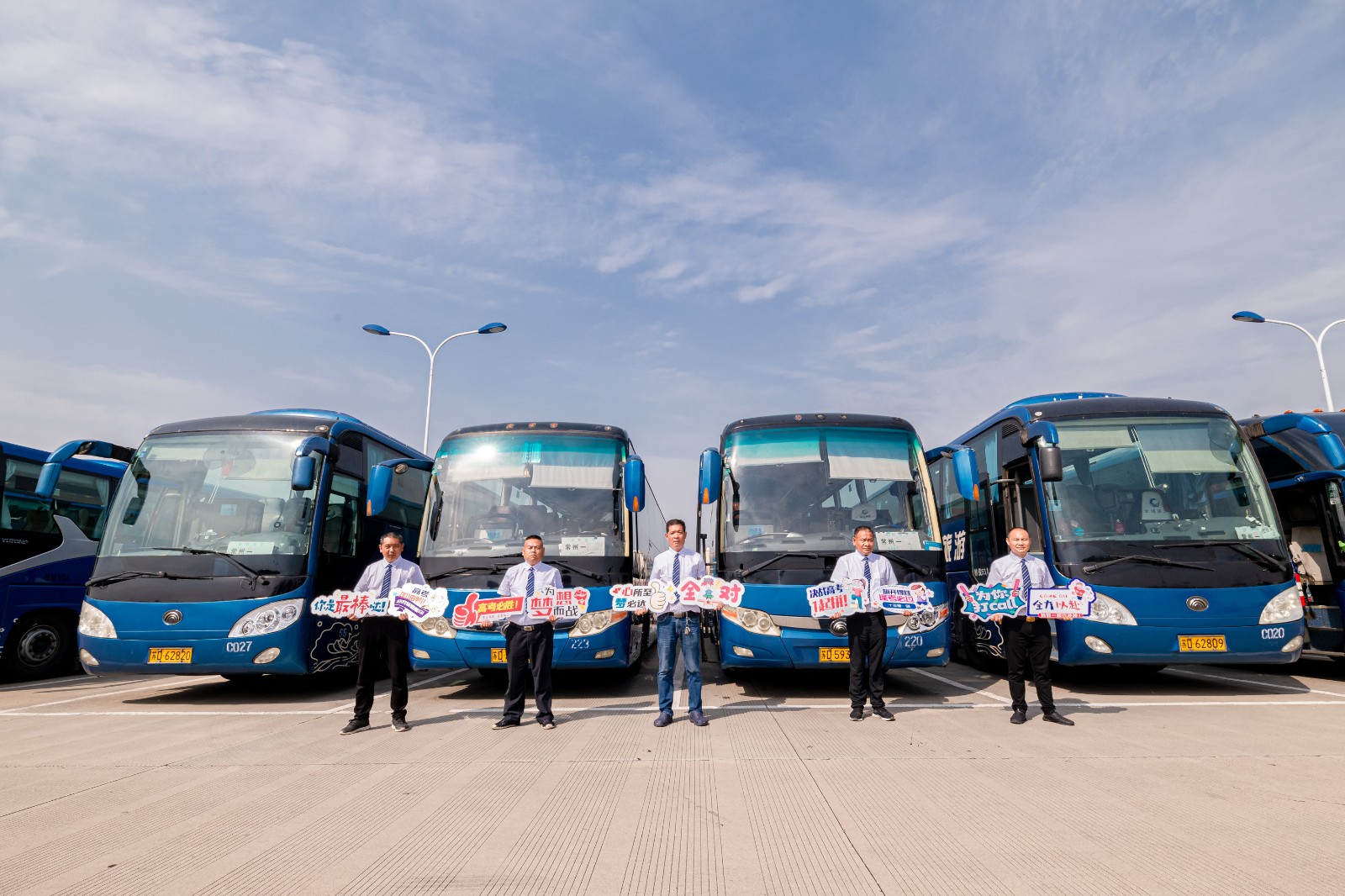 優(yōu)質(zhì)高考,服務(wù)更人性。所有車(chē)輛按照標(biāo)準(zhǔn)做好衛(wèi)生保潔工作,全程循環(huán)通風(fēng),提供一個(gè)綠色溫馨的乘車(chē)環(huán)境。所有駕駛員標(biāo)準(zhǔn)著裝,笑臉迎客,引導(dǎo)學(xué)生上車(chē),在送考途中為考生播放相聲、小品等娛樂(lè)性的節(jié)目,為考生減壓。公司還精心制作了“高考必勝、為你打call”等標(biāo)牌,為考生助力加油。駕駛員將嚴(yán)格按照規(guī)定時(shí)間發(fā)車(chē),全程勻速行駛,確保安全準(zhǔn)點(diǎn)將考生送達(dá)指定考場(chǎng)??忌萝?chē)后,駕駛員將及時(shí)對(duì)車(chē)內(nèi)進(jìn)行細(xì)致的檢查,防止出現(xiàn)“馬大哈”學(xué)生丟失文具的情況出現(xiàn)。公司還安排安管人員帶隊(duì),做好現(xiàn)場(chǎng)指揮管理,配備應(yīng)急車(chē)輛及機(jī)動(dòng)駕駛員,做好應(yīng)急保障。