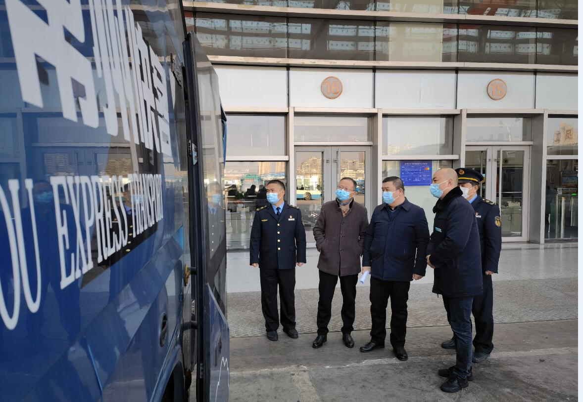 1月12日上午,省交通運輸綜合執(zhí)法局調(diào)研員周黃德一行至常州汽車客運站就道路運輸疫情防控進行督導檢查,市交通運輸執(zhí)法支隊副支隊長王丁柱,集團公司副總經(jīng)理費軒龍及站務(wù)分公司負責人陪同督查。